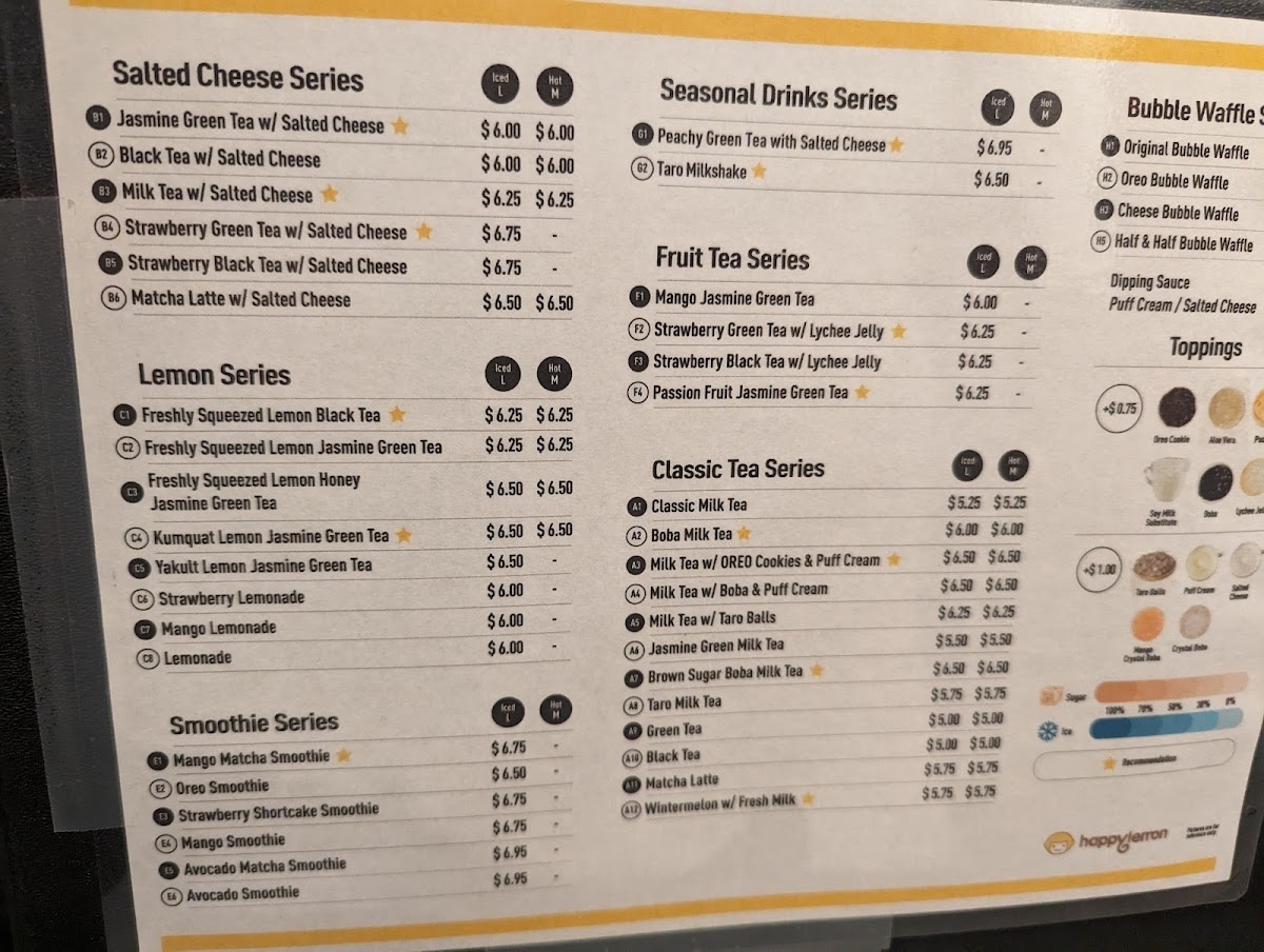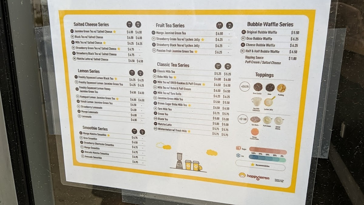 Happy Lemon San Marcos offers a menu centered around comforting drinks and casual treats, perfect for those looking to unwind or share a simple, satisfying moment. The menu blends classic bubble tea favorites with unique twists, creating a relaxed café vibe where refreshing and flavorful beverages are the main attraction.