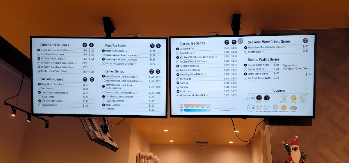 Guests can enjoy an array of expertly crafted drinks such as fruity jasmine teas, creamy smoothies made with real avocado, or innovative flavors like peachy green tea topped with salted cheese. Paired with casual bites like bubble waffles or the Oreo cream puff, these options suit an afternoon break, a casual meet-up, or a refreshing pause between errands or classes.
